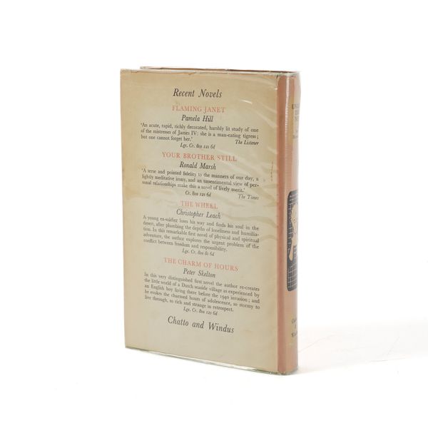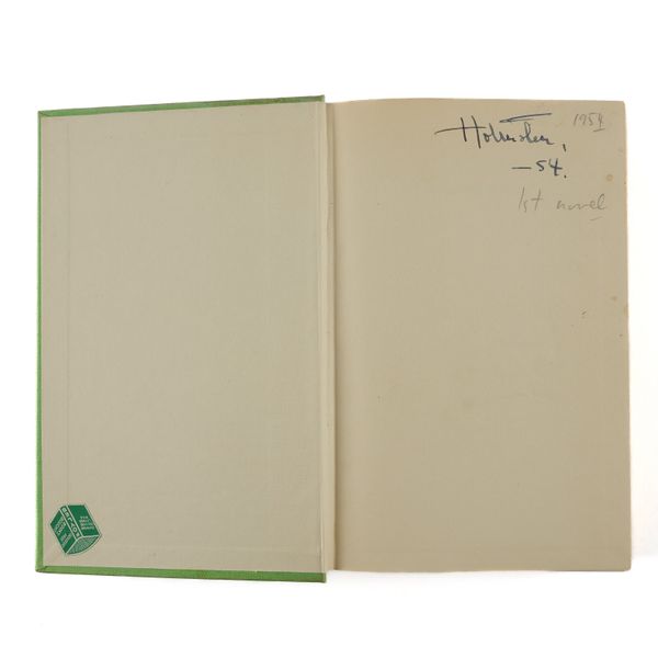 MURDOCH, Iris (1919-99). Under the Net. London: Chatto & Windus, 1954. 8vo (198 x 130mm). Half title (mainly marginal stains to pp.11-14). Original bright green cloth, the spine lettered and decorated in gilt, dust-jacket by Victor Ross with price of 12s. 6d. unclipped (the dust-jacket with a V-shaped part torn away from the head of the backstrip extending into a short tear, not affecting letters, very slightly faded at the edges and at backstrip, some very light browning to the edges of the lower wrapper). Provenance: [?]Hollister - '54 (signature on the front free endpaper, with additional pencil notes); Foyles (small bookseller's label on the front pastedown). FIRST EDITION of the author's first novel. Please note that the original dust-jacket has been photographed in its modern protective archival Mylar wrapper, thereby avoiding any risk of damage through its temporary removal. Boxall (Ed.) 1001 Books (2006) p.481: "Iris Murdoch's first published novel, Under the Net, captures the exuberant spirit of freedom in postwar Europe ... Beneath the surface of the fast-moving narrative lies a wealth of philosophical questioning: Murdoch contests existential ideas of freedom; she asks what it means to be in love; and she rigorously questions what makes a good writer and what constitutes good art. Underlying these ideas are the questions of how accurately thought can be translated into language (language is the net of the title) and how far art distances us from reality, rather than bringing us closer to it ..." RARE.