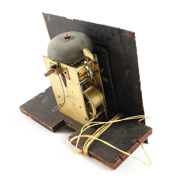 Two weights, one crank key and brass flat rod and brass bod pendulum. The case is in good condition, some marks and knocks consistent with age. The movement appears well cared for and has been cleaned a while back.