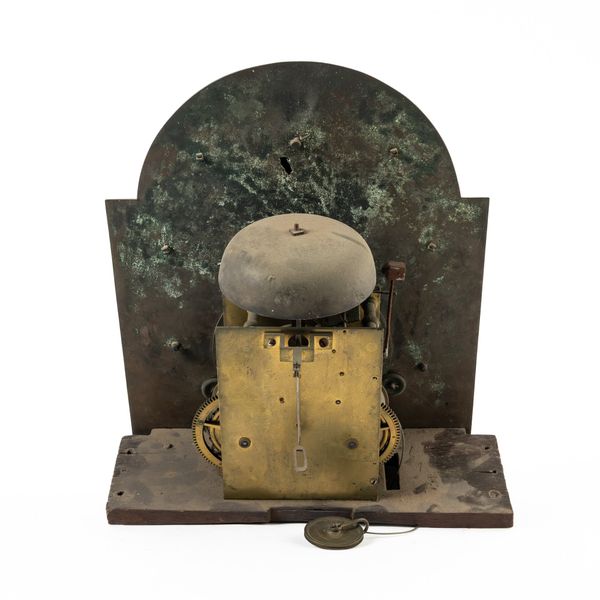 With steel rod brass bob pendulum, no key and two reproduction brass finials.