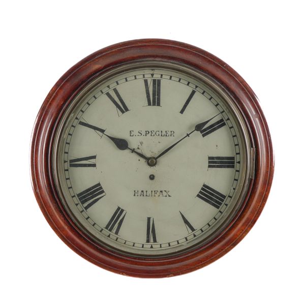 With moulded surround, glazed brass bezel above 14in white painted dial, with blued steel hands, the movement with shouldered plates and iron inter dial plate, wire gut fusée movement with anchor escapement