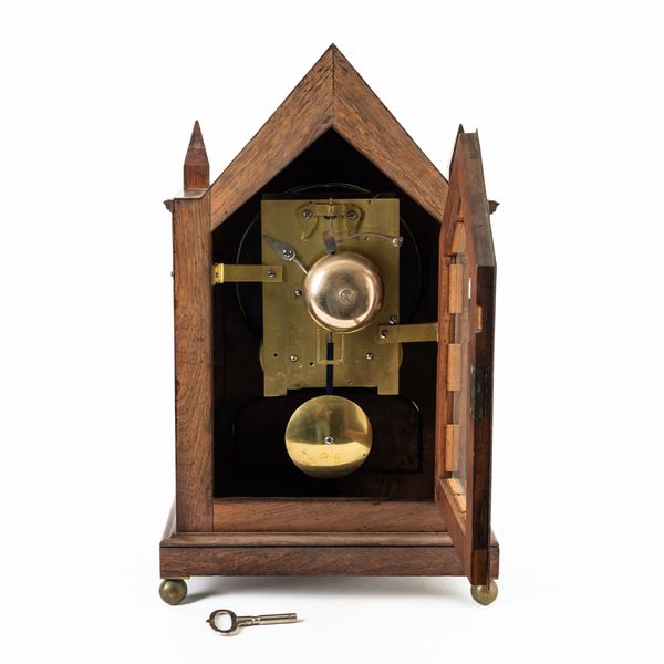 With pendulum and steel key. Overall in good original condition. A couple of small paint chips to dial. The movement appears clean and recently serviced?