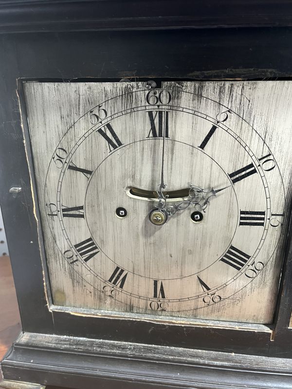 In good original unrestored condition. Some marks and knocks to the case consistent with age and evidence of dryness with some slight veneer lifting. Small chip to moulding above door on rear left, approx 2cm long. The silvered dial has not been re-silvered for some time so has a slight streaking on the vertical. The movement whilst converted to anchor appears to have been well cared for and is clean and was working up to consignment.