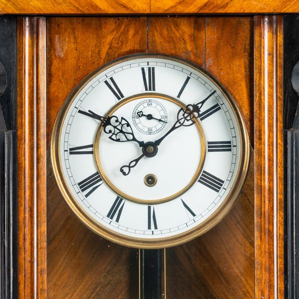 In original condition. The walnut is of a pleasing colour. The movement will require a service as it appears not to have been cleaned in a while. The case would benefit from a wax. With pendulum, weight and key.