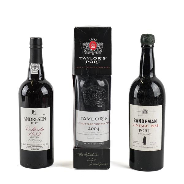 Including a bottle of Andresen Colheita Port 1982, bottled in 2002, and a boxed bottle of Taylor's Late Bottled Vintage Port 2004