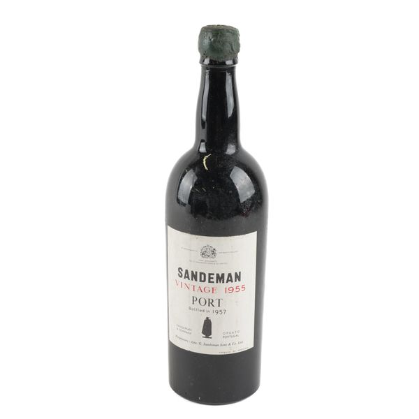 A BOTTLE OF SANDEMAN VINTAGE PORT 1955 AND TWO OTHER BOTTLES (3)