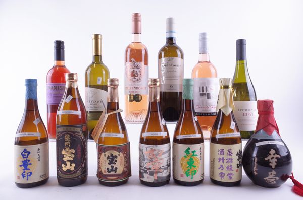 SIX BOTTLES VARIOUS WHITE AND ROSE WINE AND EIGHT BOTTLES ASIAN SPIRIT