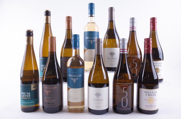 See Ya Later Ranch 2 x Gewürztraminer 2023; Inniskillin Okanagan Estate Winery 2 x Reserve Pinot Gris 2022 and 2 x Pinot Grigio 2023; Culmina Family Estate Winery 2 x N°23 La Part Des Ours 2023; 50th Parallel Estate 2 x Chardonnay 2022; Hester Creek Estate Winery 2 x Chardonnay 2023