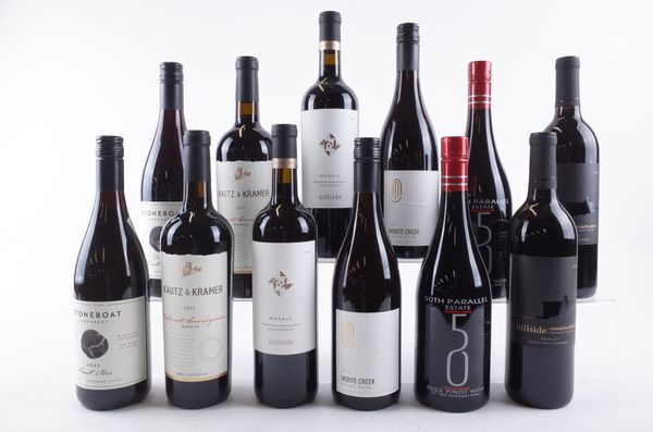 Stoneboat Vineyards 2 x Estate Pinot Noir 2022; Hillside Winery + Bistro 2 x Mosaic 2018 and 2 x Occhi Dolci Vineyard Merlot 2022; Monte Creek Winery 2 x Ancient Waters Pinot Noir 2022; 50th Parallel Estate 2 x Pinot Noir 2022; Kautz + Kramer 2 x Block 50 Cabernet Sauvignon 2021