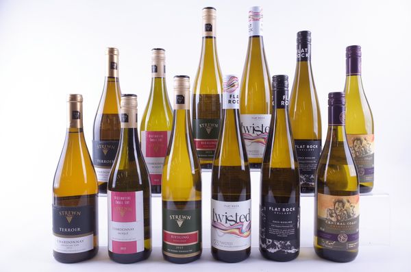 Strewn Winery 2 x Terroir Chardonnay 2022, 2 x Musqué Chardonnay 2023 and 2 x Luscious Riesling 2023; Flat Rock Cellars 2 x Twisted 2023 and 2 x Foundation Riesling 2023; Sainsbury's 2 x Taste The Difference Chardonnay 2022