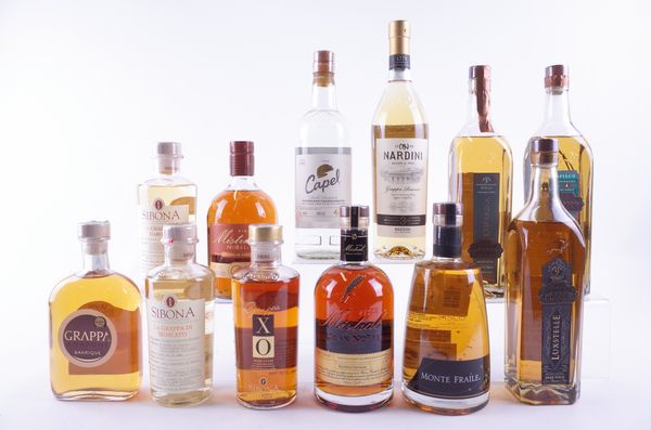 Barrique Grappa Amarone (50cl); Sibona La Grappa di Barolo (50cl), La Grappa di Moscato (50cl) and Grappa XO Aged Cuvée (50cl); Nardini Grappa Riserva; Mistral Pisco Añejado en Roble Classico and Pisco Reserva Privada; Monte Fraile Pisco Reserve; Capel Pisco Doble Destilado Reservado Transparente; Bou Barroeta Pisco Noor Reservado, Moscatel Reservado and Moscatel Gran Pisco