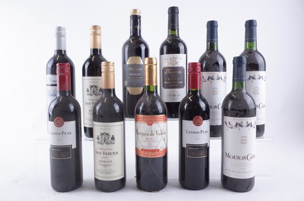 Lindos Peak 2 x Merlot 2013; Hilltop Estate 2 x Sn Varosa Merlot 2009; Marques de Valido Rioja 1999; Baron Philippe de Rothschild 3 x Mouton Cadet Bordeaux 2001; Joven Tunante Rioja 2009; Vine Country Merlot Cellar Selection 2013; Vinartis Shiraz 2013