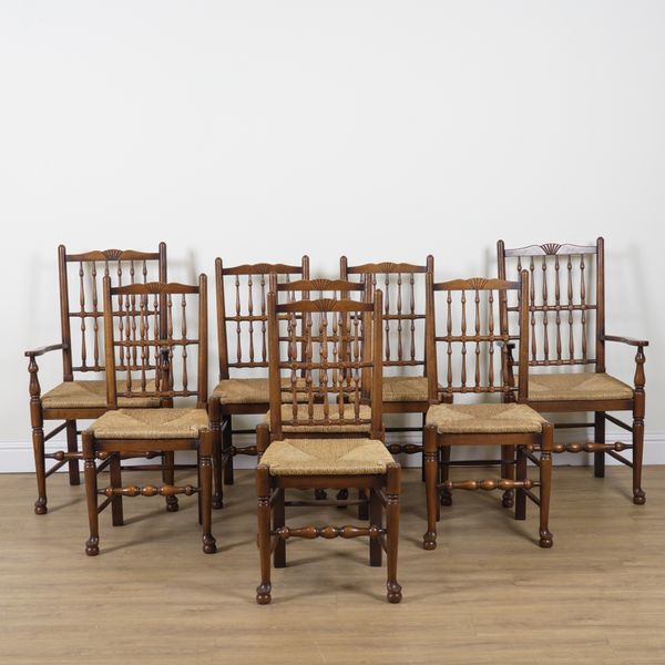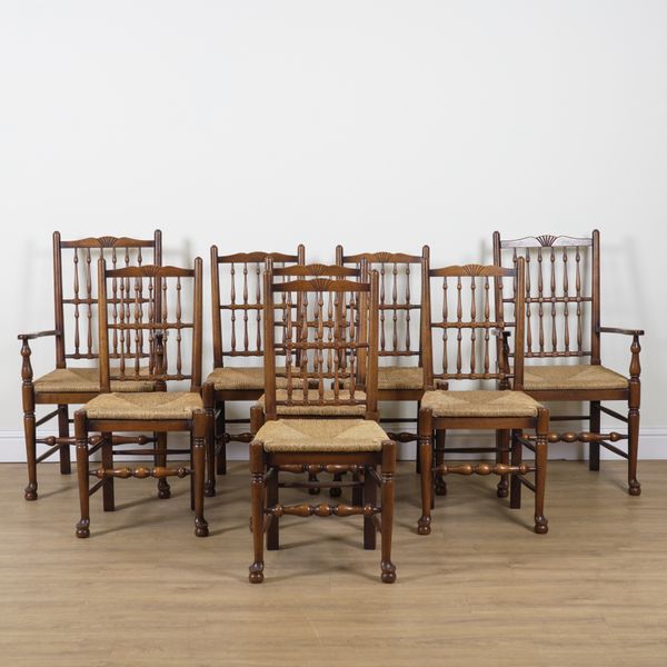 A SET OF EIGHT LANCASHIRE SPINDLE BACK DINING CHAIRS (8)