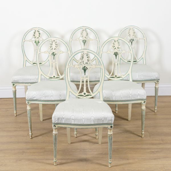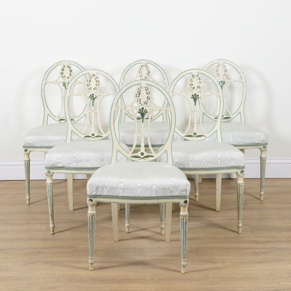 A SET OF SIX 18TH CENTURY AND LATER WHITE PAINTED SWEDISH DINING CHAIRS (6)
