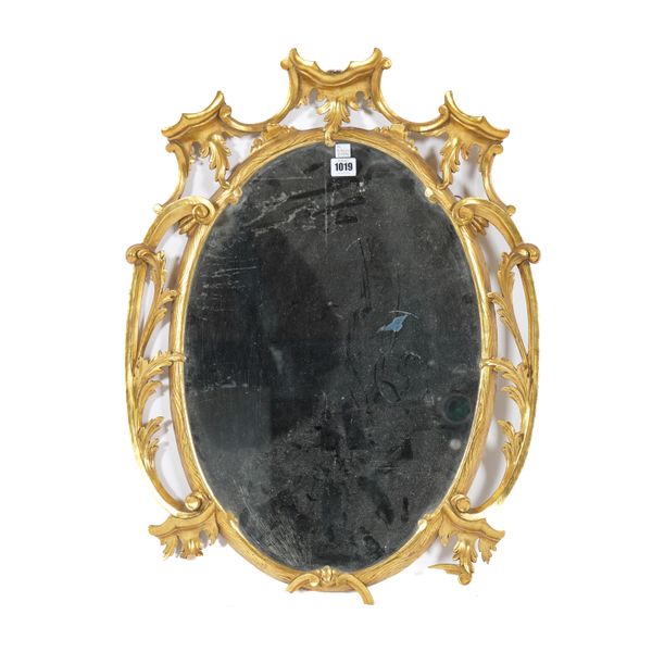 A GEORGE III STYLE GILT FRAMED OVAL MIRROR