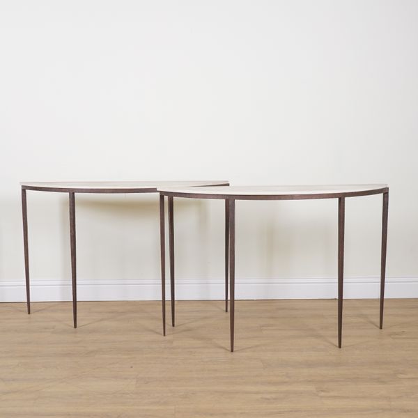 A PAIR OF DEMI LUNE CONSOLE TABLES (2)