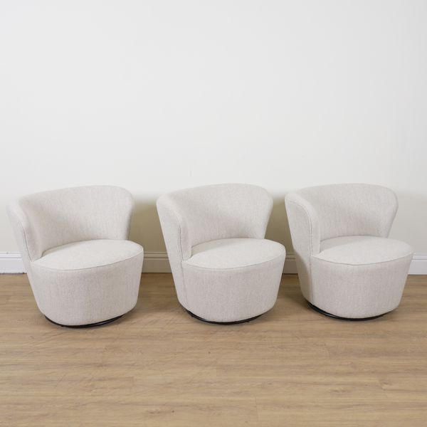 ROBERT LANGFORD, BATTERSEA; A SET OF THREE UPHOLSTERED SWIVEL TUB BACK ARMCHAIRS (3)