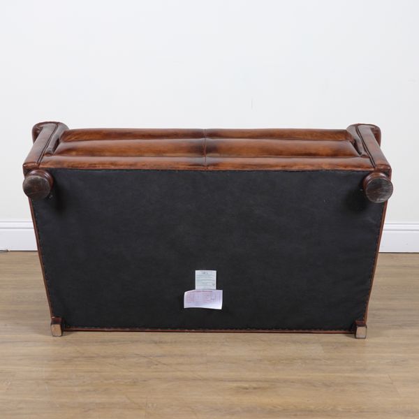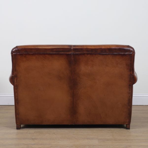 A TAN LEATHER UPHOLSTERED TWO SEAT SOFA
