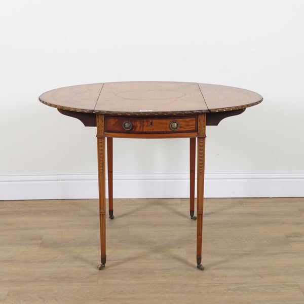 A GEORGE III INLAID AND CROSS-BANDED SATINWOOD PEMBROKE TABLE
