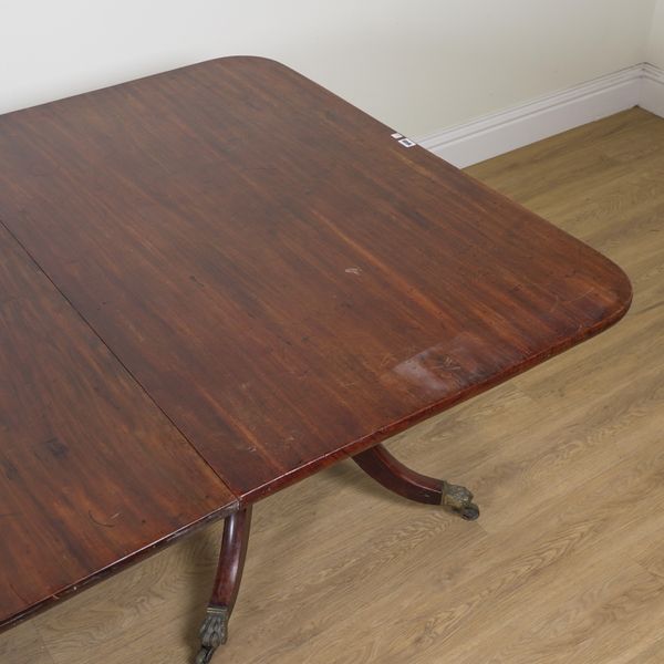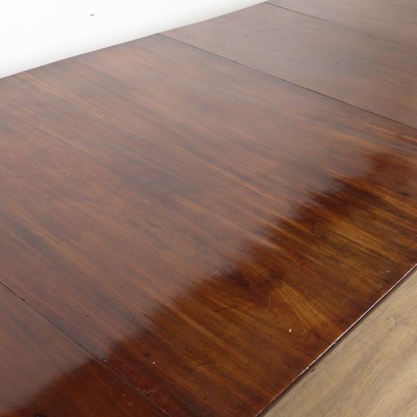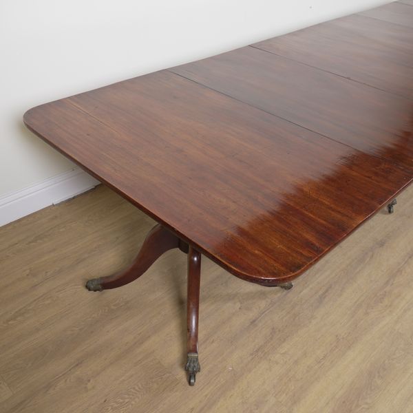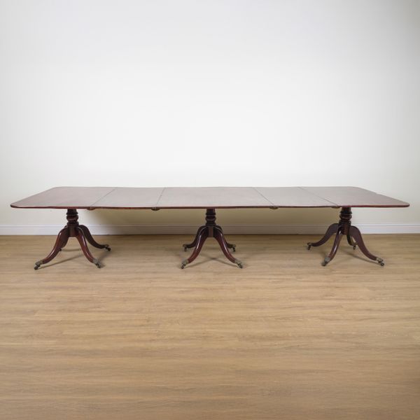 A REGENCY MAHOGANY TRIPLE PILLAR DINING TABLE