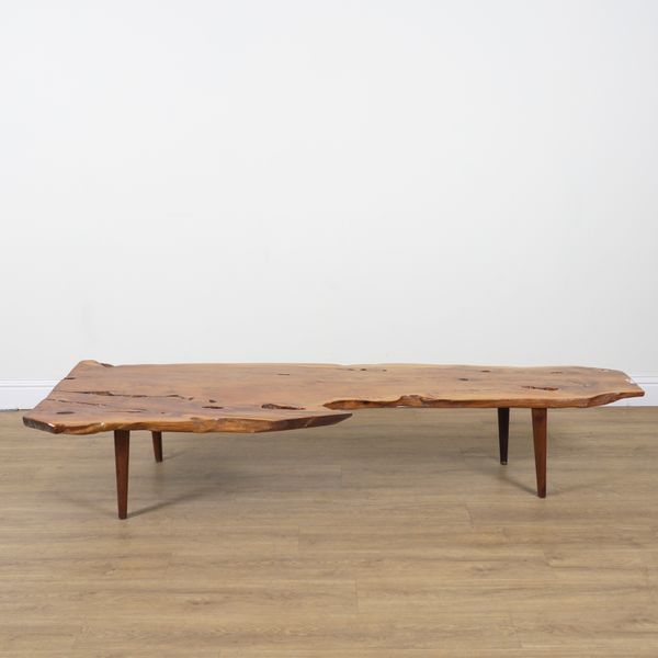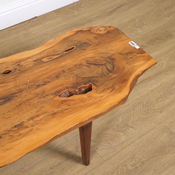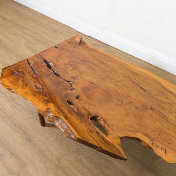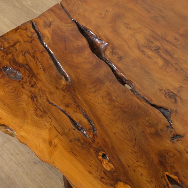 A YEW WOOD SLAB COFFEE TABLE