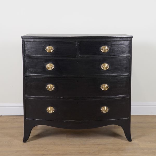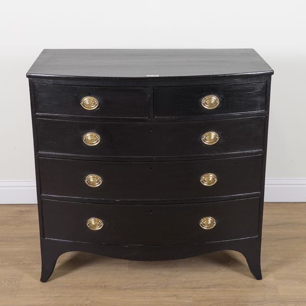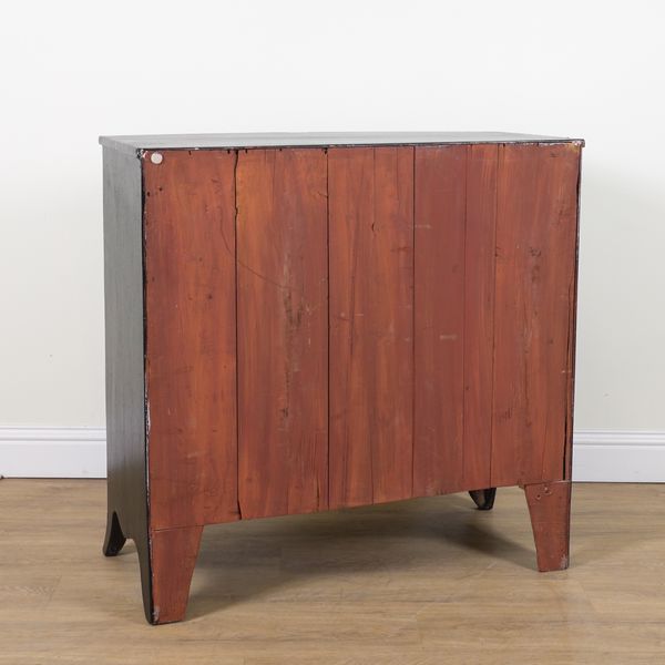 A 19TH CENTURY AND LATER BLACK PAINTED BOWFRONT CHEST OF DRAWERS