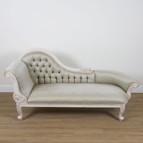 A VICTORIAN STYLE WHITE PAINTED CHAISE LONGUE