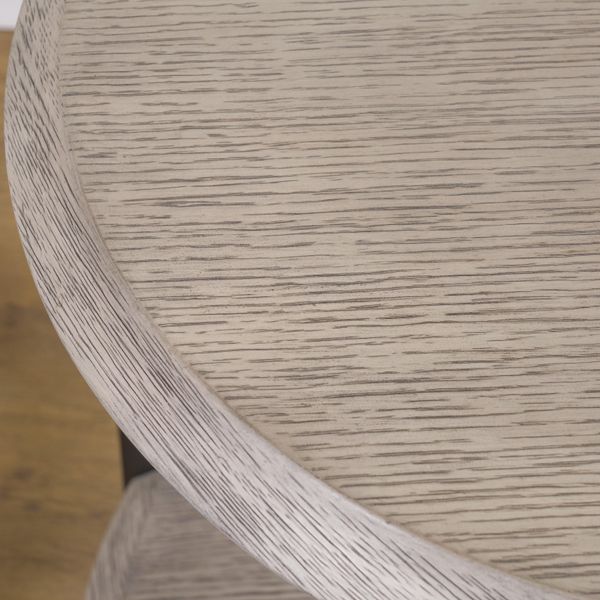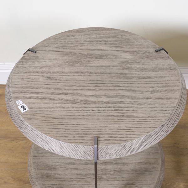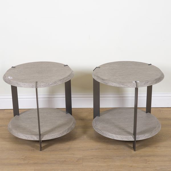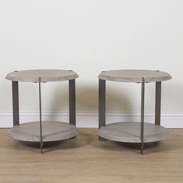 ROBERT LANGFORD, KENILWORTH; A PAIR OF GREY WASHED OAK CIRCULAR TWO TIER SIDE TABLES (2)