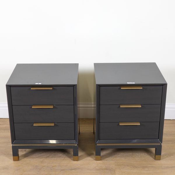 ROBERT LANGFORD, BAXTER 500; A PAIR OF GREY LACQUERED THREE DRAWER BEDSIDE CHESTS (2)