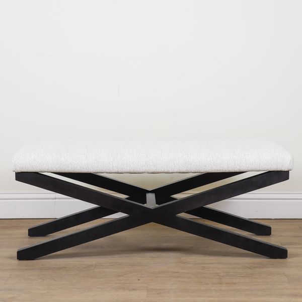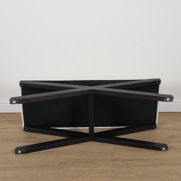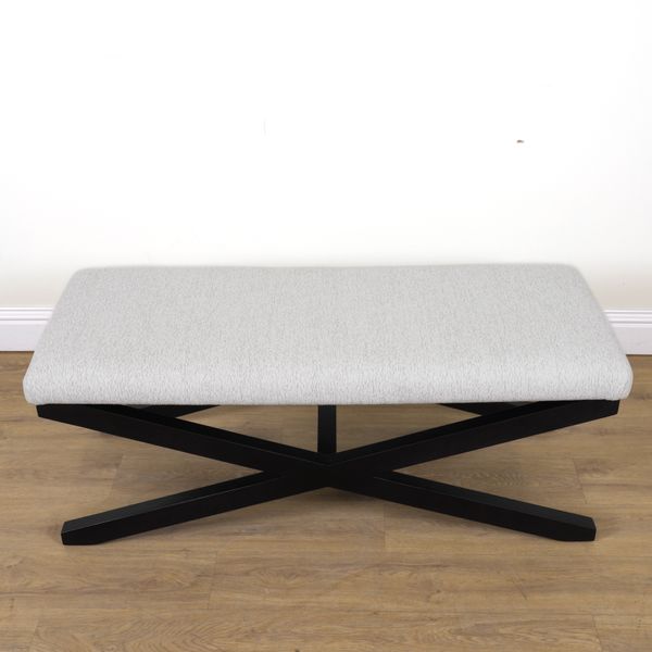 ROBERT LANGFORD, KIRBY BED END; A RECTANGULAR WHITE UPHOLSTERED FOOTSTOOL