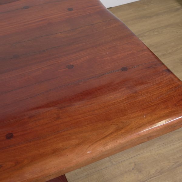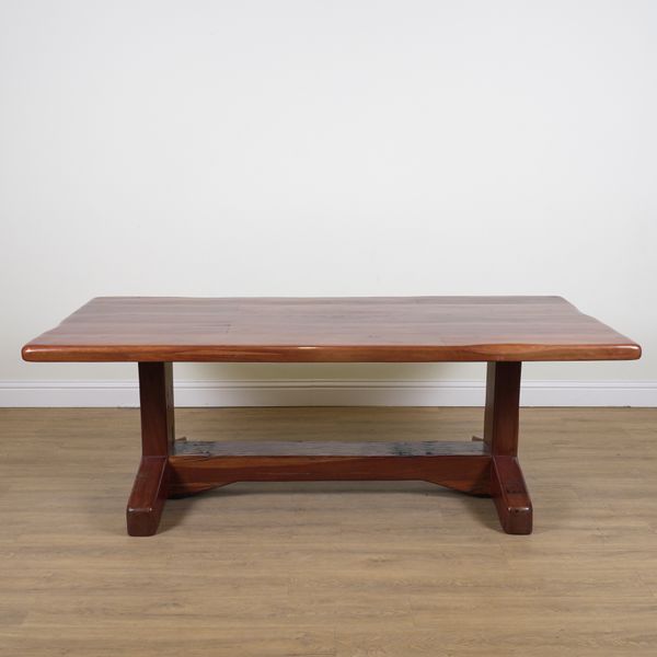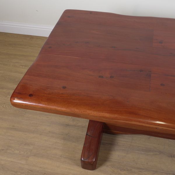AN AFRICAN HARDWOOD PLANK-TOP REFECTORY TABLE
