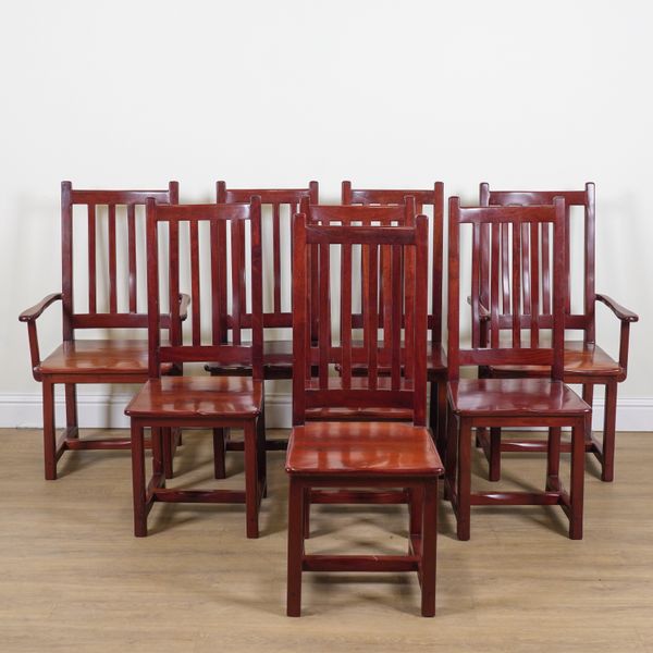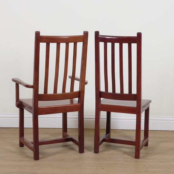A SET OF EIGHT AFRICAN HARDWOOD STICK BACK DINING CHAIRS (8)