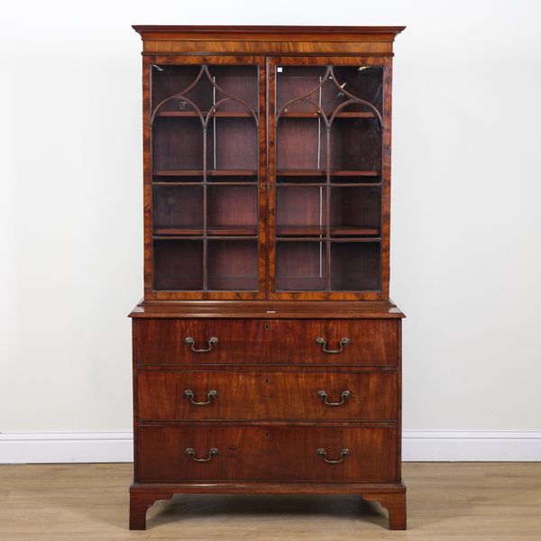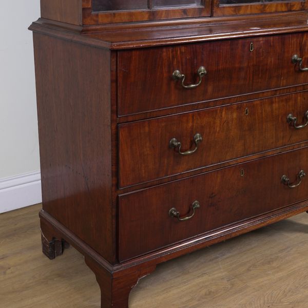 A GEORGE III MAHOGANY GLAZED CABINET ON CHEST