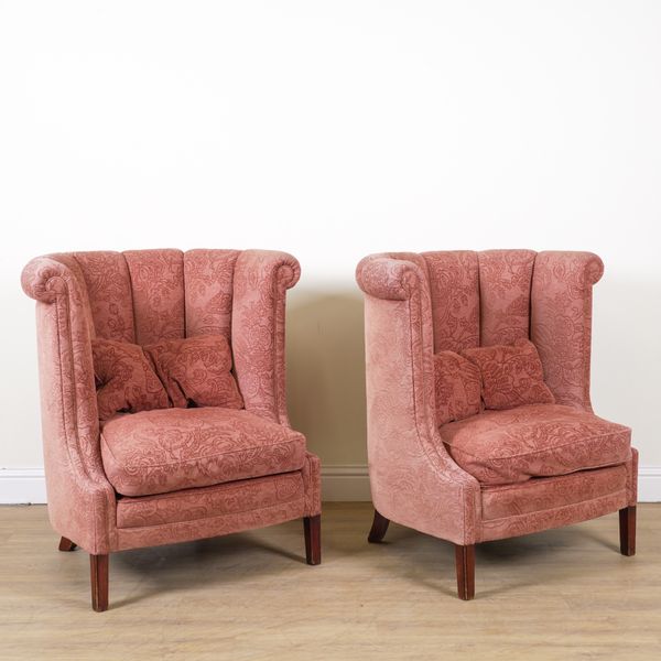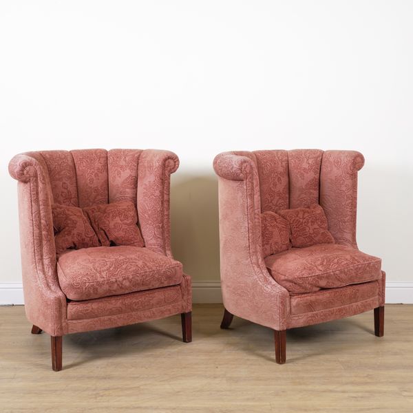 PARKER FARR MACKINTOSH; A PAIR OF BARREL BACK UPHOLSTERED ARMCHAIRS (2)