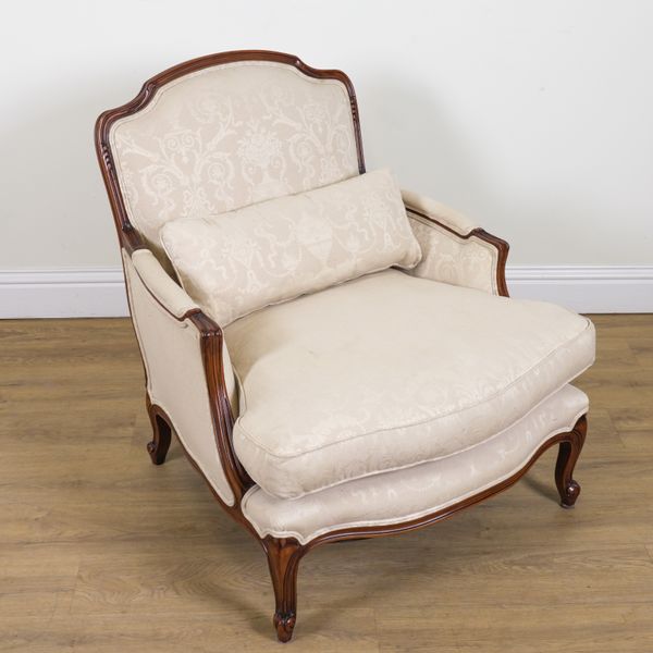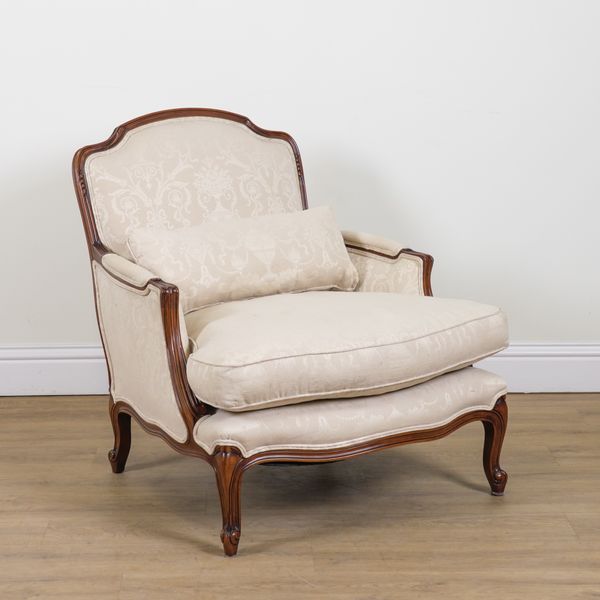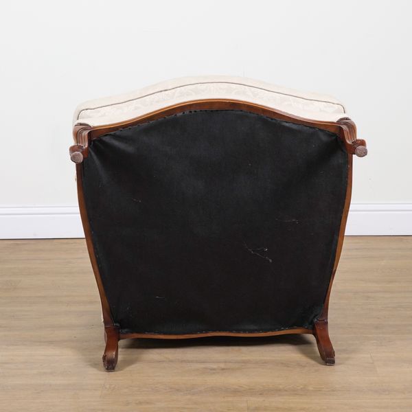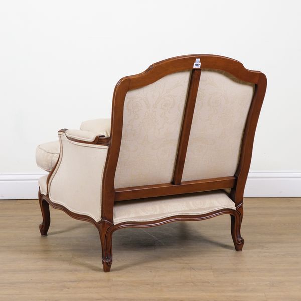 A LOUIS XV STYLE STAINED BEECH FRAMED ARMCHAIR
