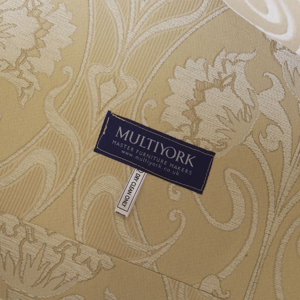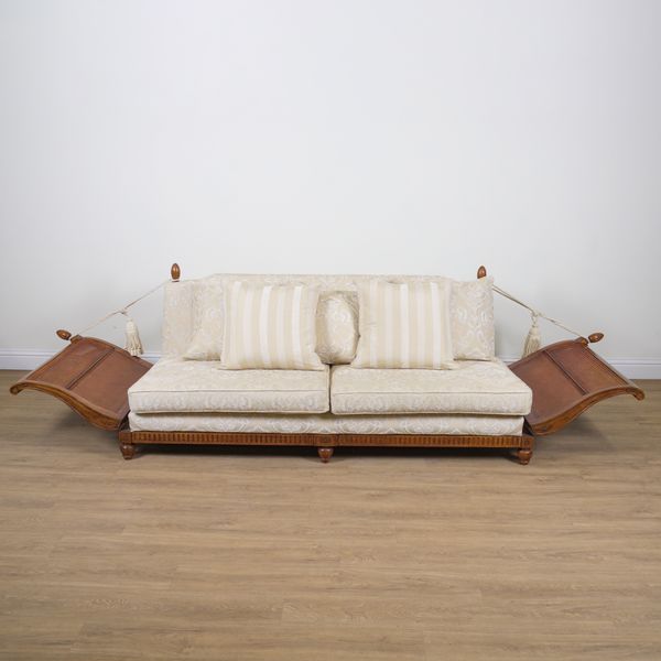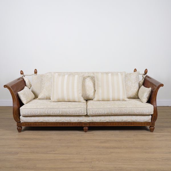 MULTIYORK; A STAINED BEECH CANED DROP END KNOLE SOFA