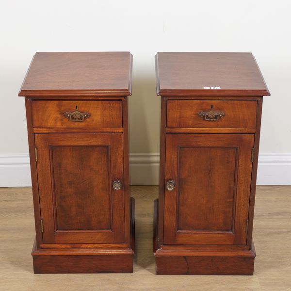 A PAIR OF MAHOGANY SINGLE DRAWER BEDSIDE CUPBOARDS (2)