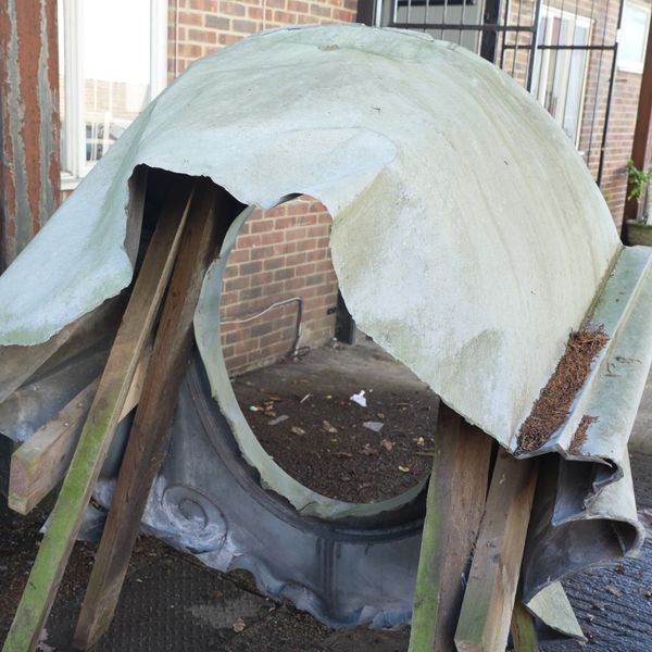 A LATE 19TH/ EARLY 20TH CENTURY FRENCH ‘OIL DE BOEUF’ ZINC WINDOW FRAME