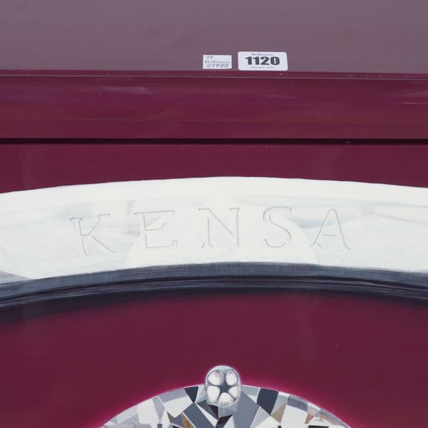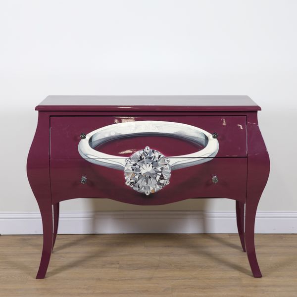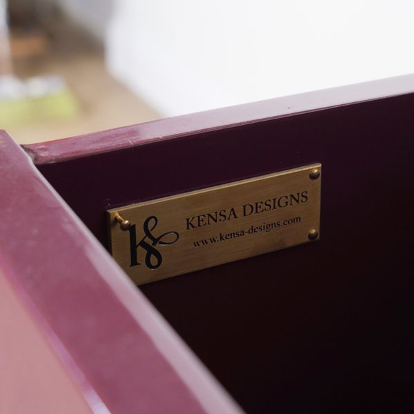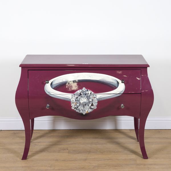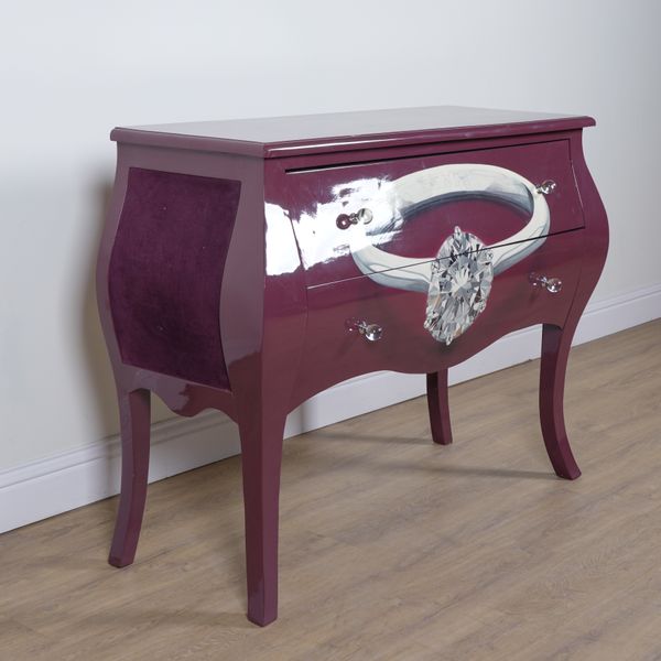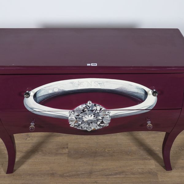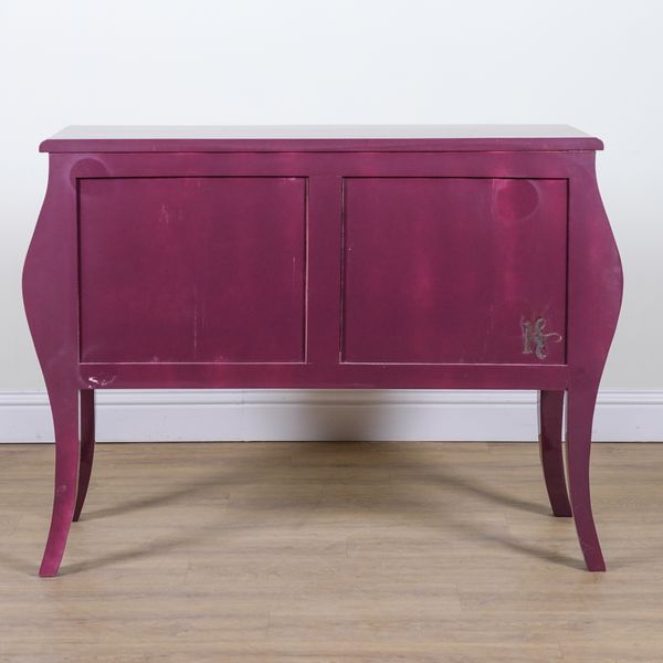 KENSA DESIGN; A RED/BURGANDY LACQUERED TWO DRAWER BOMBE COMMODE