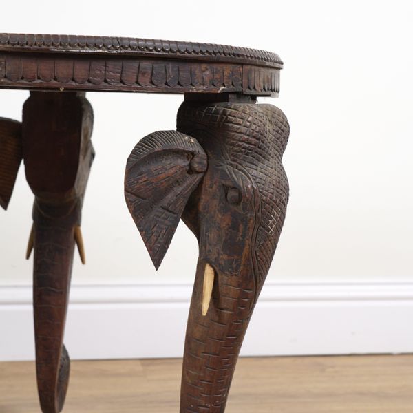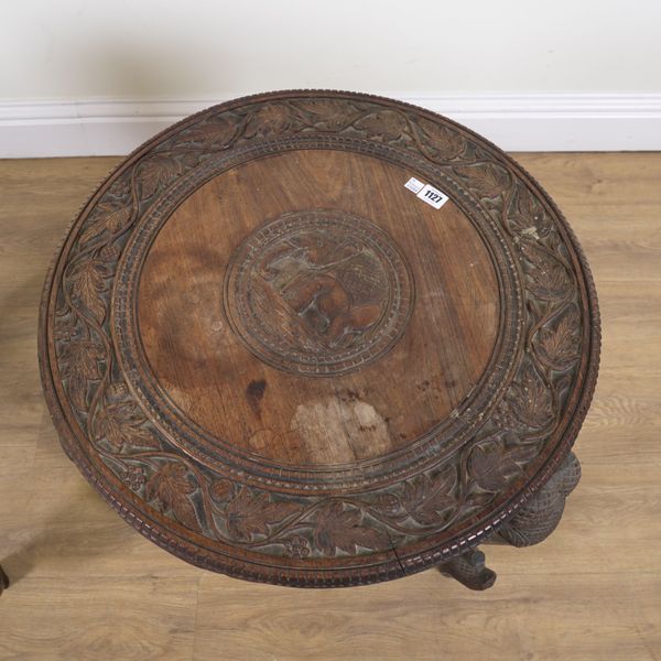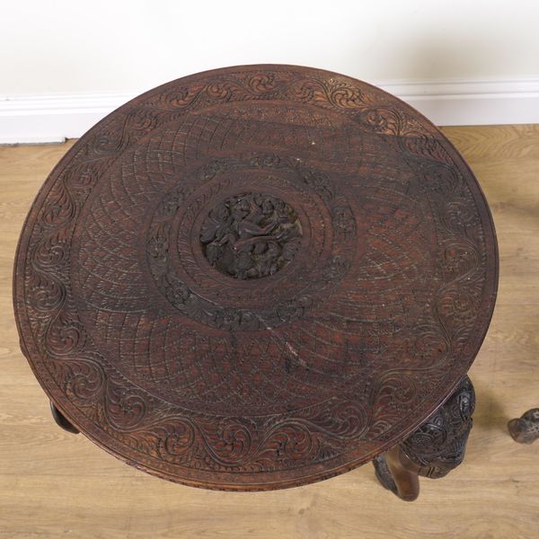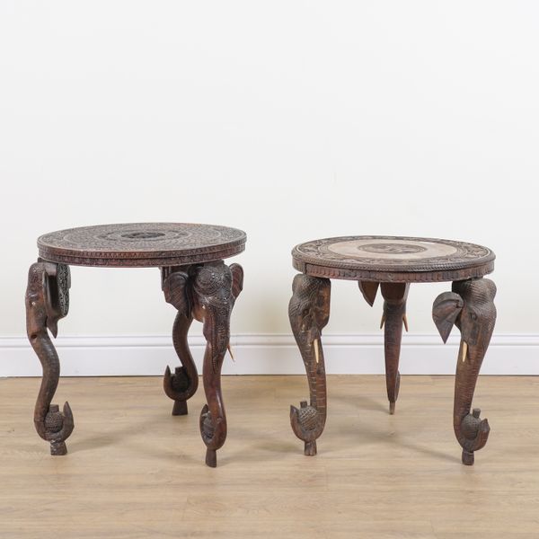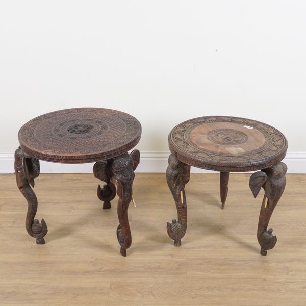 TWO ANGLO INDIAN CARVED HARDWOOD CIRCULAR OCCASIONAL TABLES (2)