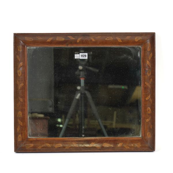 A 19TH CENTURY DUTCH MARQUETRY INLAID WALNUT CUSHION FRAMED WALL MIRROR
