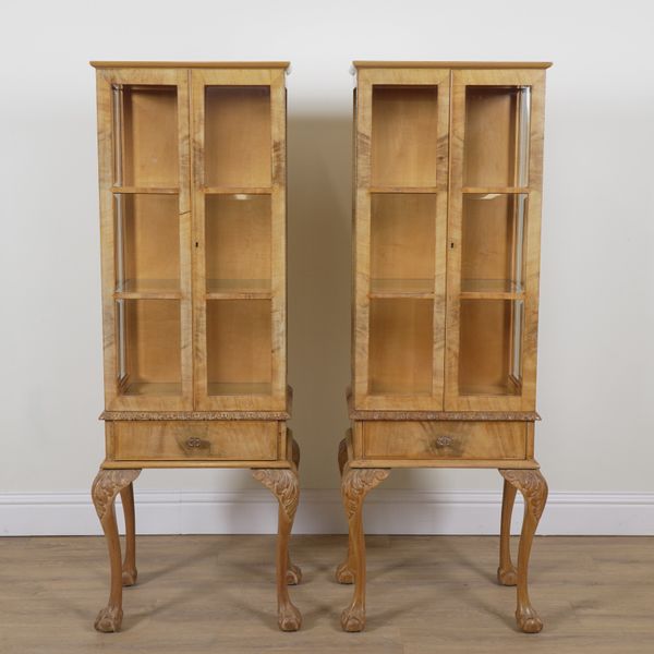 A PAIR OF VICTORIAN STYLE WALNUT DISPLAY CABINETS (2)
