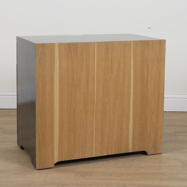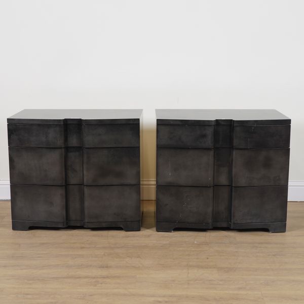 SIMON ORRELL DESIGNS; A PAIR OF MODERN EBONISED THREE DRAWER BEDSIDE CHESTS (2)
