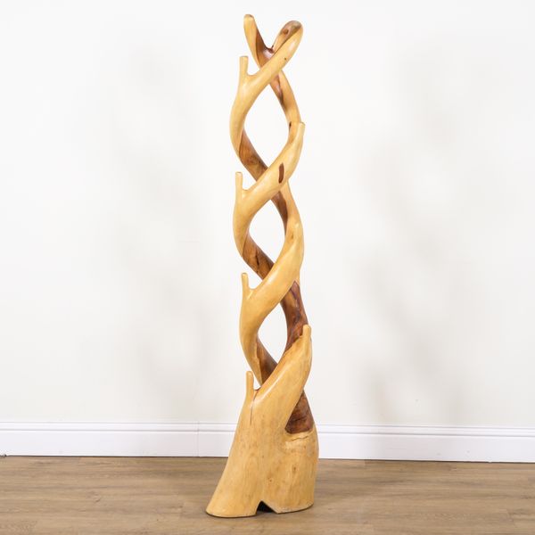 A HARDWOOD TREE ROOT COAT STAND