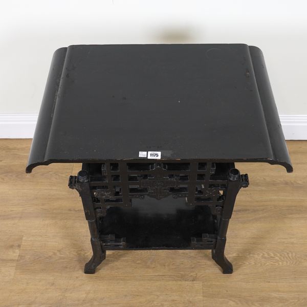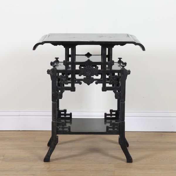 POSSIBLY EW. GODWIN; AN EARLY 20TH CENTURY EBONISED EASTERN INFLUENCED OCCASIONAL TABLE
