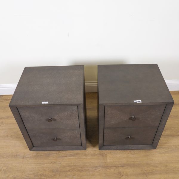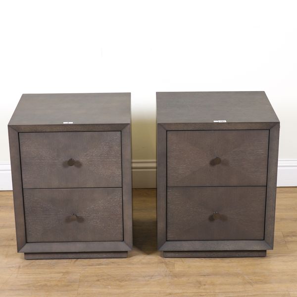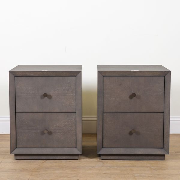 ROBERT LANGFORD, SEATTLE; A PAIR OF GREY WASHED OAK TWO DRAWER BEDSIDE CHESTS (2)