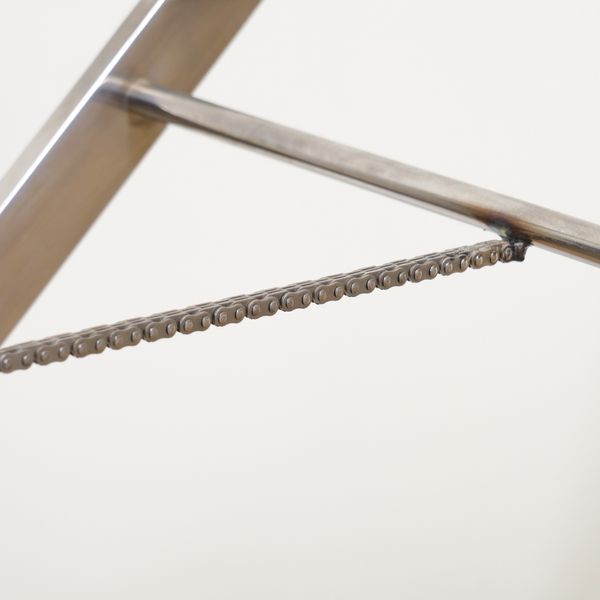 On chrome X-frame base united by chain stretcher, 60cm wide; 40cm deep; 58cm high