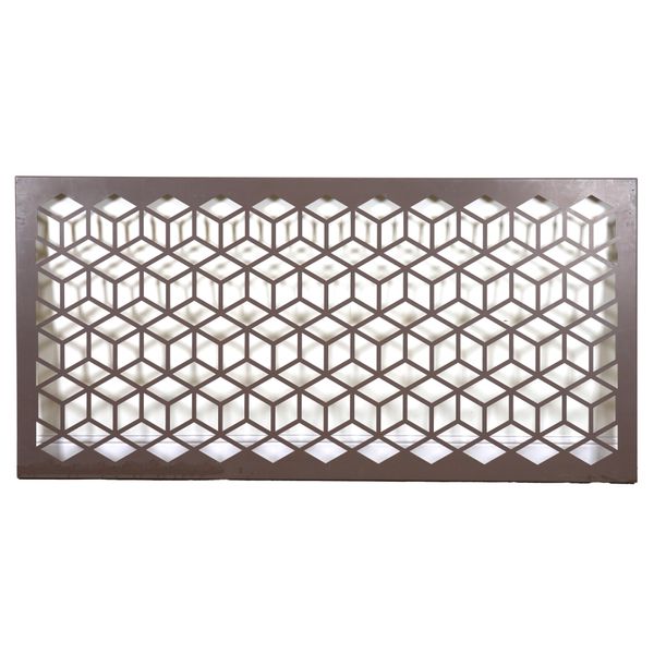 With intricate geometric decoration, each 278.5cm wide; 136.5cm high