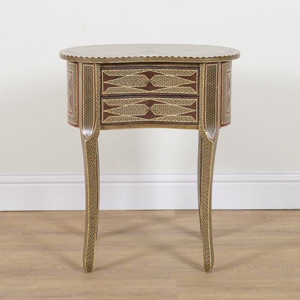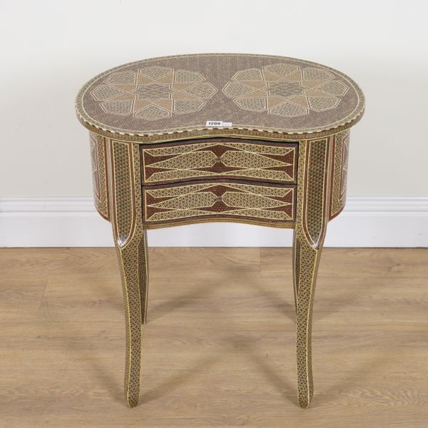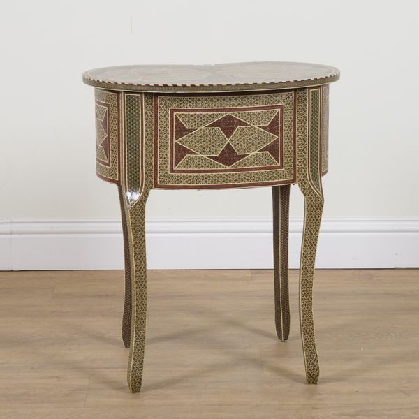 A PERSIAN DESIGN INLAID KIDNEY SHAPED OCCASIONAL TABLE