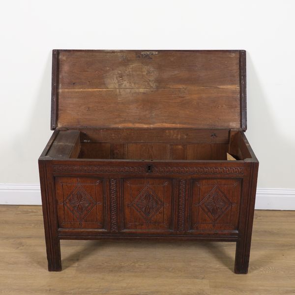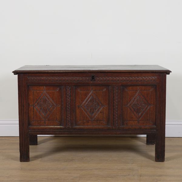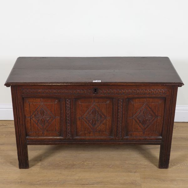 With carved triple panel front, 114cm wide; 49cm deep; 68cm high