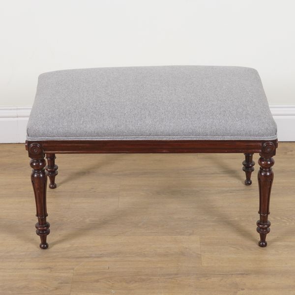 A ROSEWOOD FRAMED RECTANGULAR FOOTSTOOL